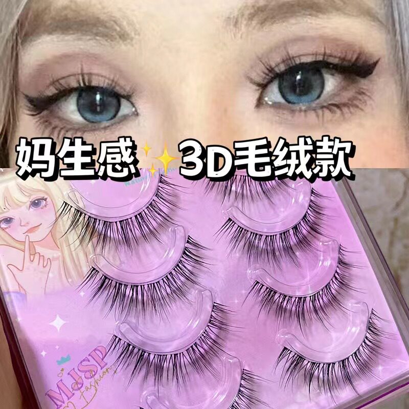Natural False Eyelash 3D Solid Mill Tip Transparent Flat Stalk Light Makeup Naked Makeup Simulation Realistic and dense daily light and light European and American-Taobao