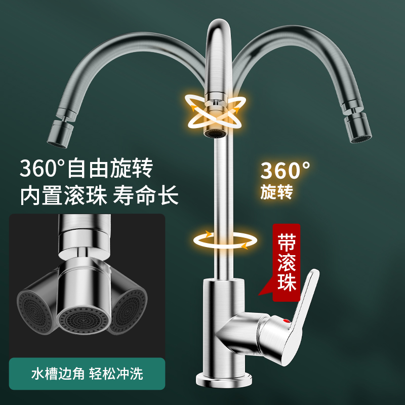 304 stainless steel kitchen faucet splash-proof hot and cold dish basin sink wash basin wash dish single cold rotating home