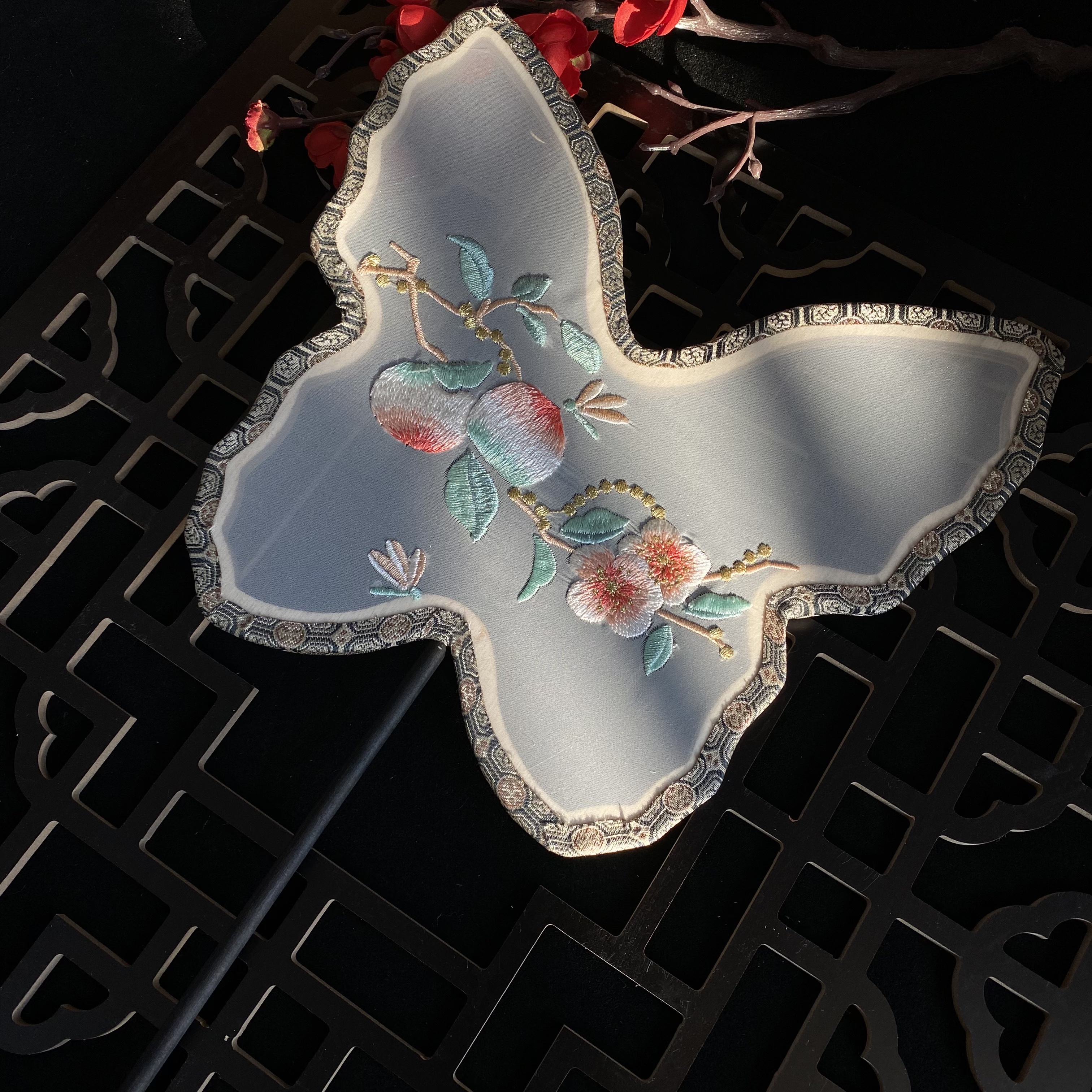 Cluster fan fan children summer semi-long handle flow su fan ancient clothing embroidered butterfly fan