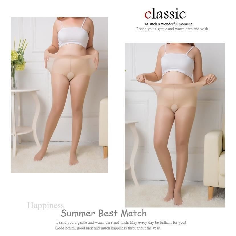 Open stockings free to wear off large code opening sexy ultra thin length plus fat MM bottom pantyhose