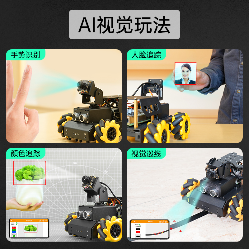 Magic Raspberry Pie 4B Smart trolley McNamwheel Visual Identification Tracking TurboPi Programming Robot