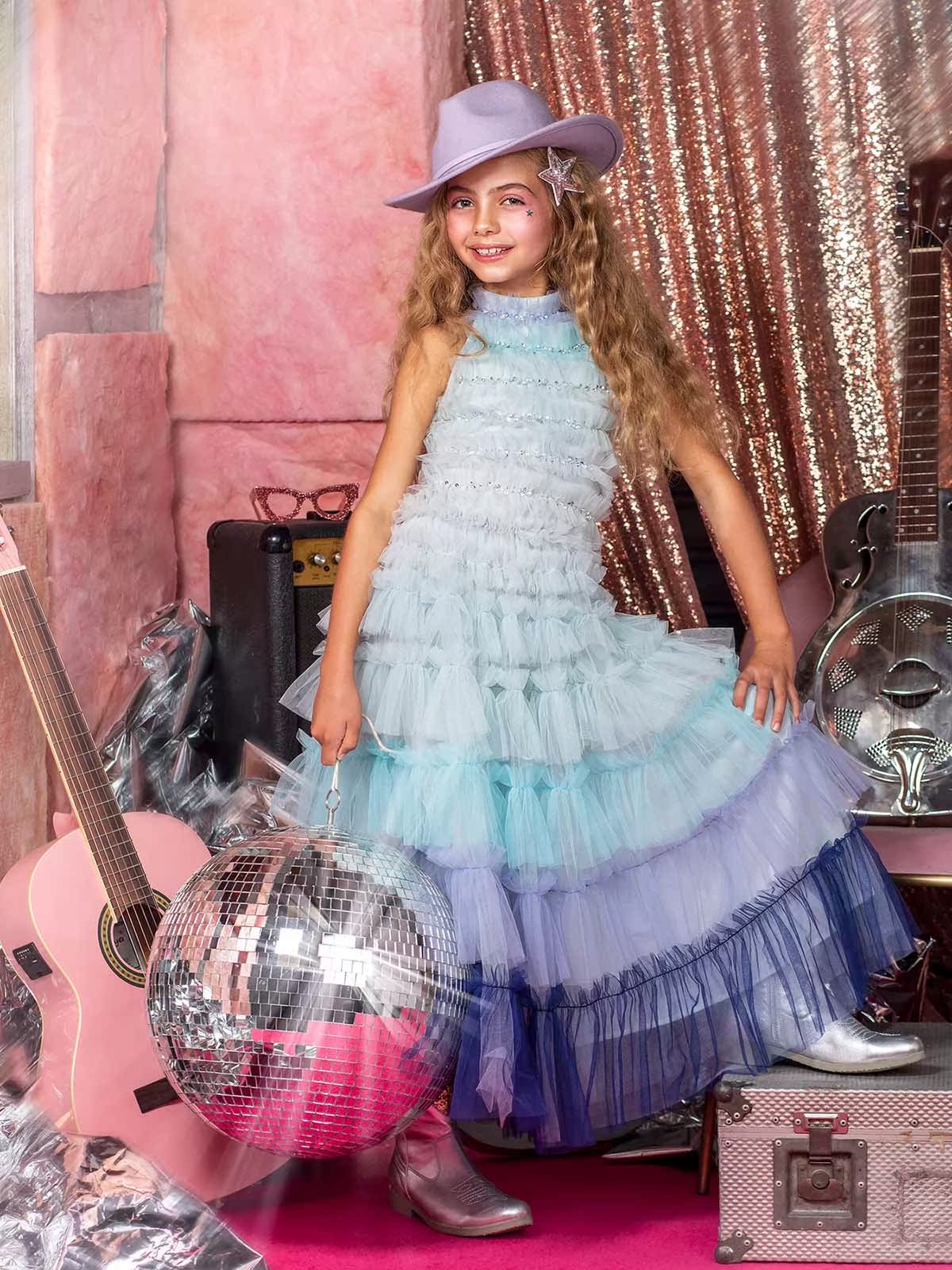 ・23SS new Tutu Du Monde gorgeous and brilliant ultra-long blue gradient dress dress
