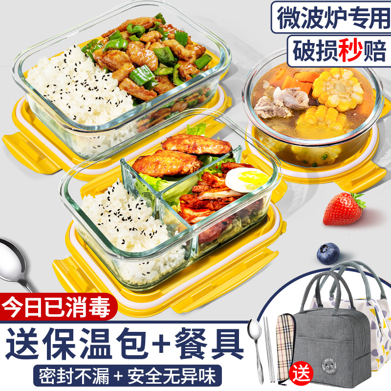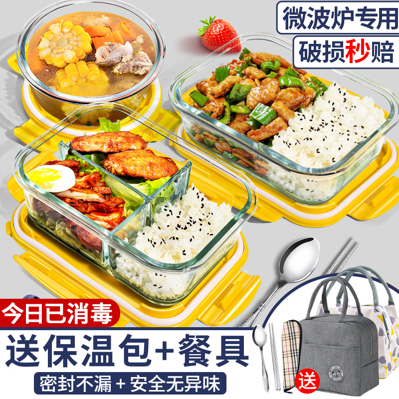 Glass Lunch Box Microwave Oven Heating Special Bowl Office Worker Insulation Lunchbox Lunch Box Separated Preservation Box-Taobao