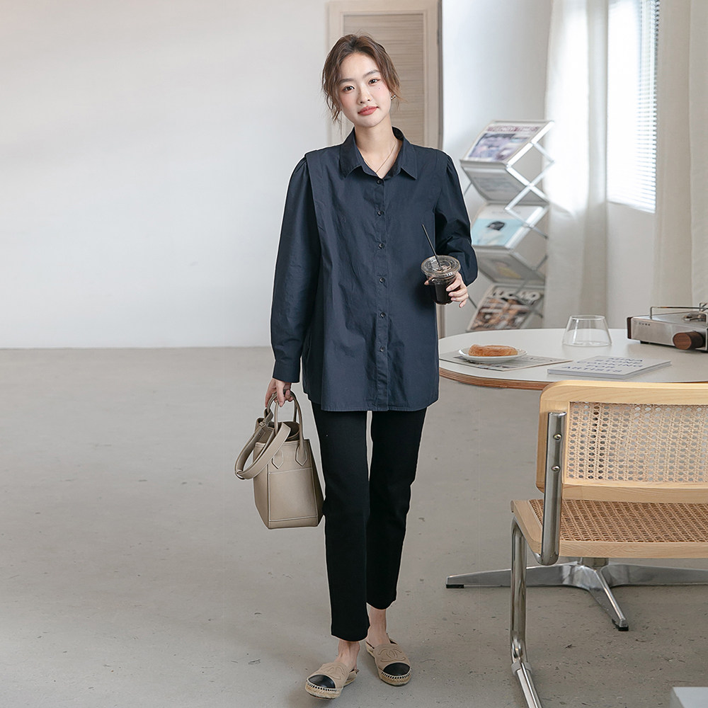 Port Winds don't cause ~ pregnant women shirts spring and autumn season French style retro senior feeling little crowdhit bottom long sleeve boomer clothes-Taobao