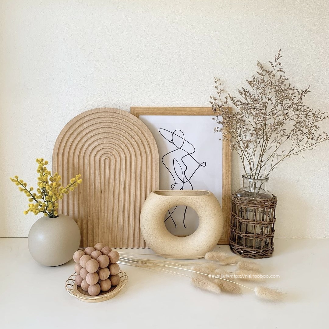 High-value tray in Korea Geometry Soliwood Japanese-style installation disk art decoration photography