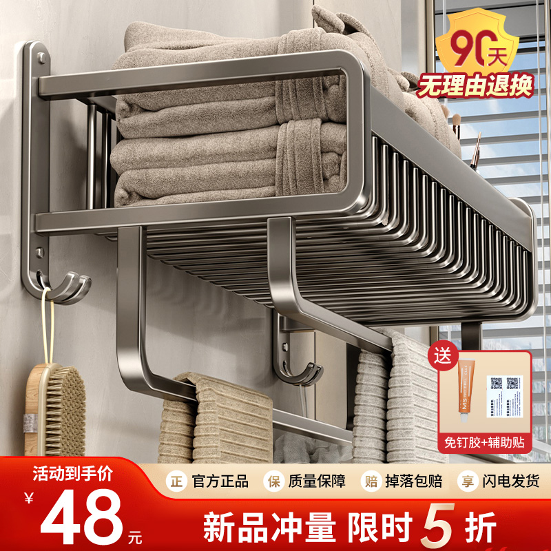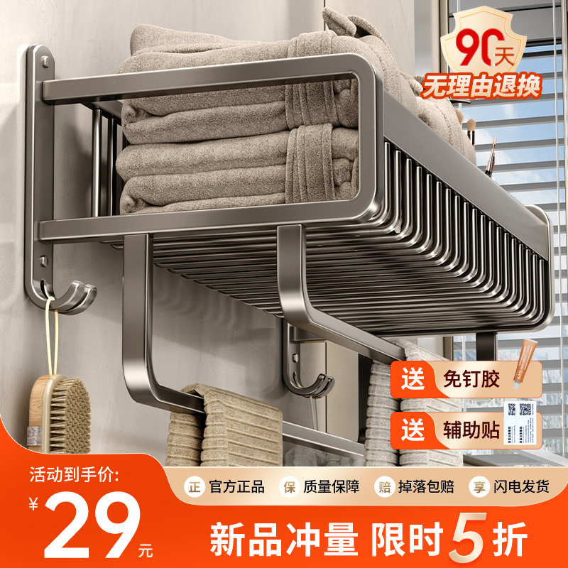 Towel Rack Toilet Free To Punch Bathroom Shelving Bathroom Bath Towel Rack Space Aluminum Containing Shelf Toilet Ash-Taobao