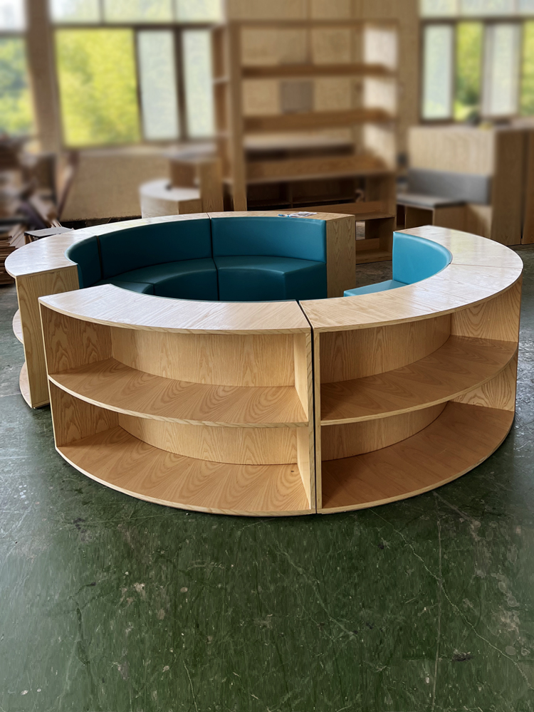 Library Alien arched S shape Free combined bookshelves mall Banking Kindergarten can sit solid wood bookcase couch-Taobao
