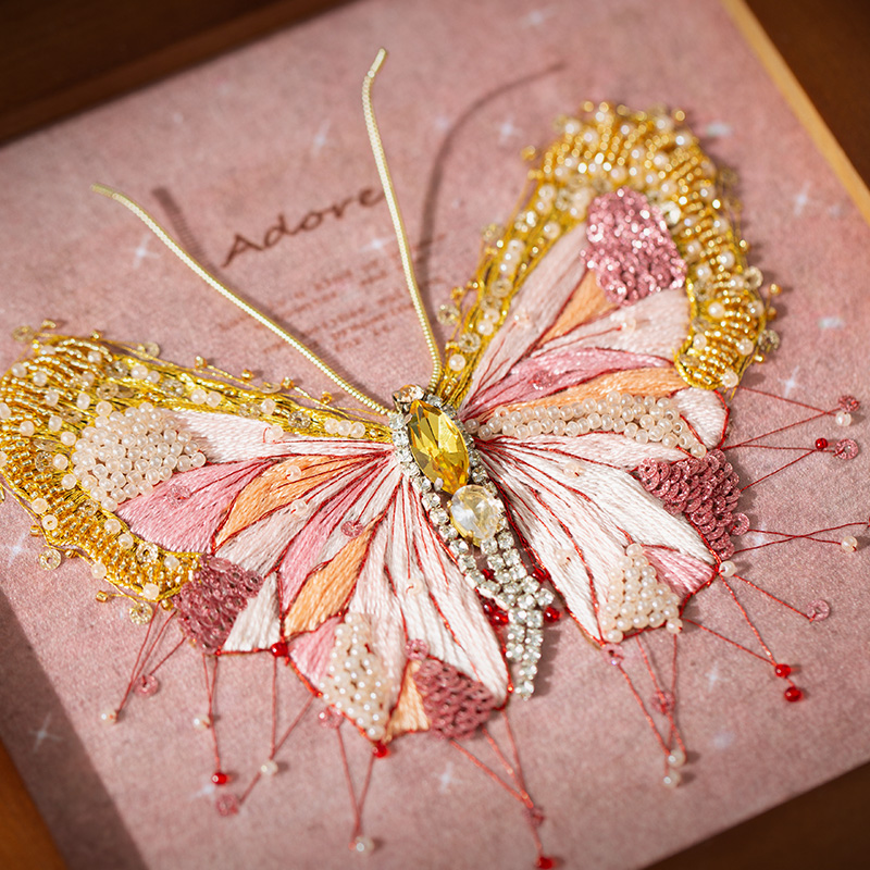 Embroidery butterfly painting-pink butterfly embroidery butterfly painting-pink butterfly embroidered pink butterfly handmade embroidery finished product