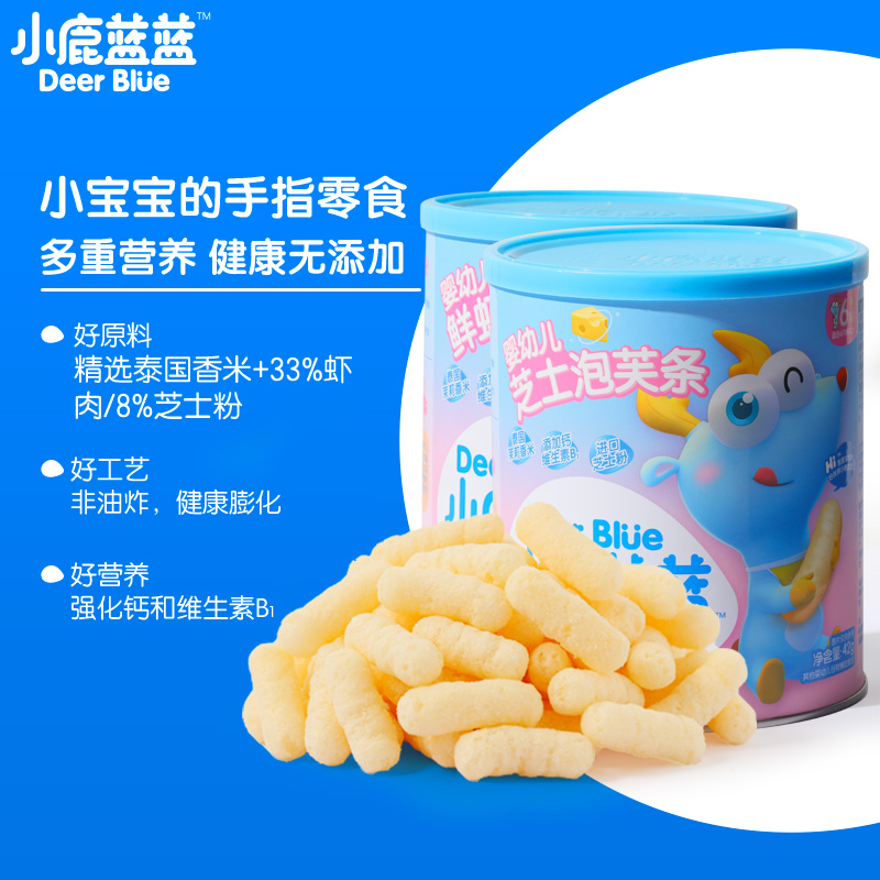 Blue and blue baby fingers folk for 6 months baby's leisure snack fresh shrimp cheese bubble