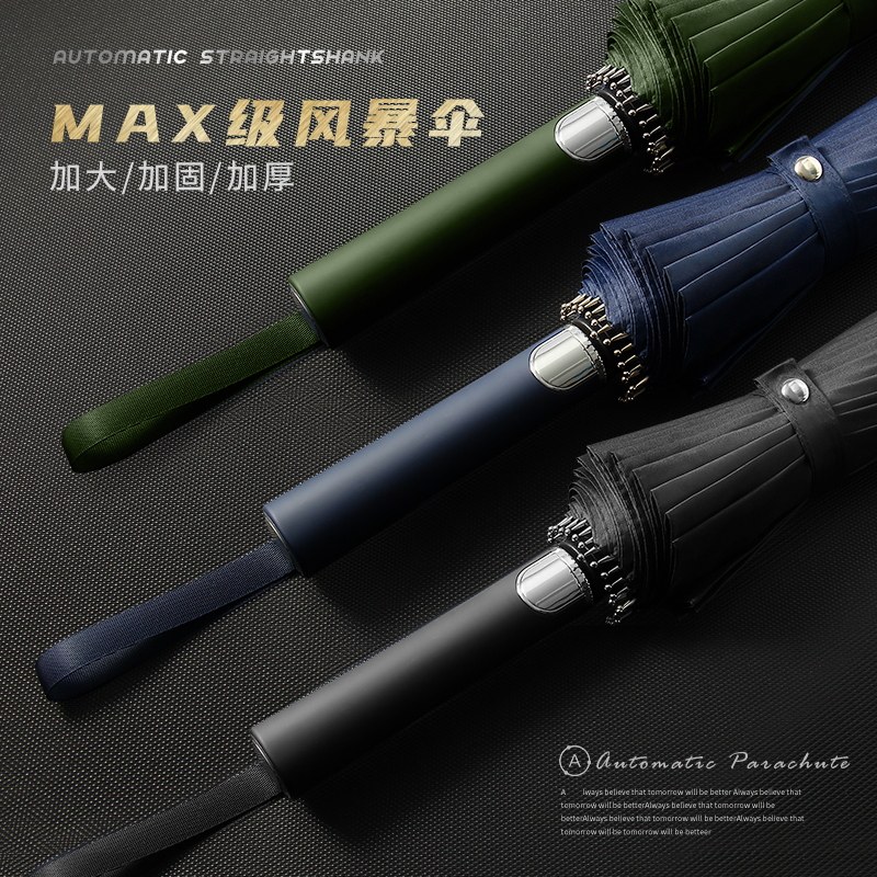 Umbrella men's automatic 24-bone long handle umbrella large reinforced thickened strong anti-storm business custom straight handle umbrella