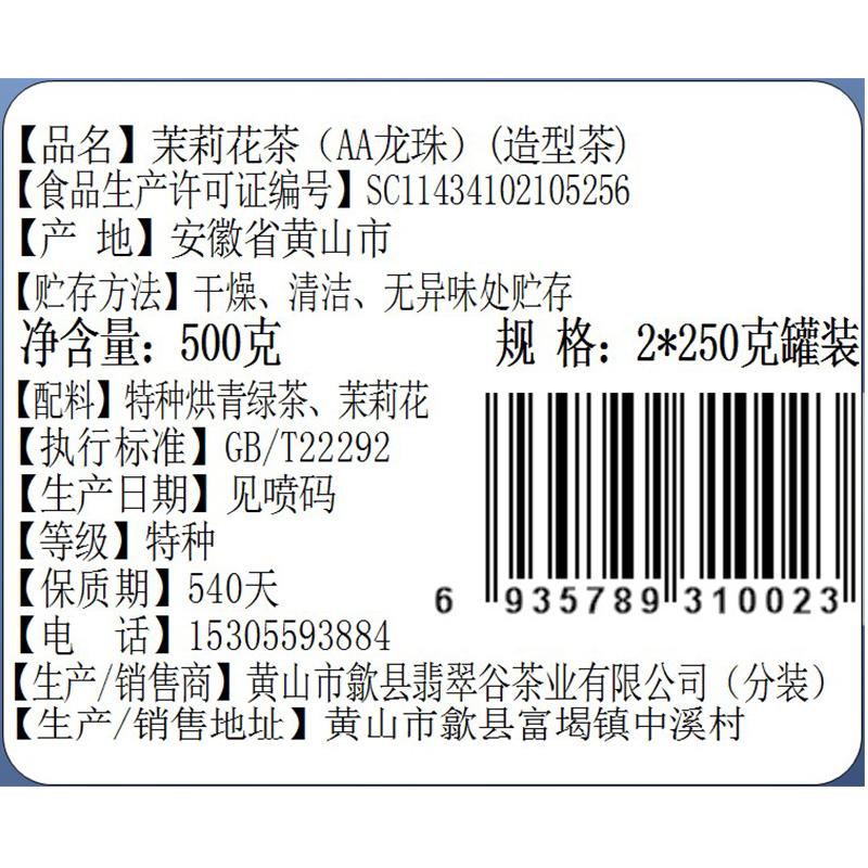 Emerald Valley 2022 New Tea Jasmine Tea (AA) Jasmine Pearl Embroidered Ball Bulk Strong Aroma Type 500 gr Canned