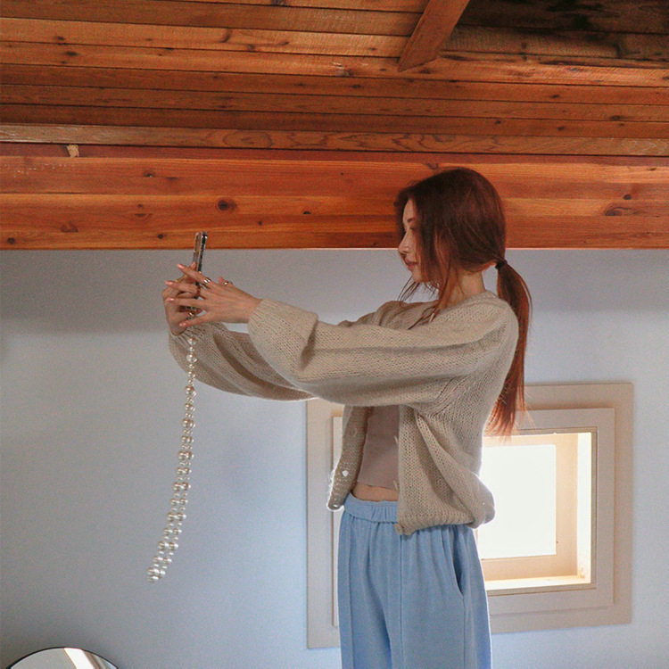 Korean Dongdaemun pearl long oblique mobile phone chain pendant female spring fashion buckle decoration ins wind accessories
