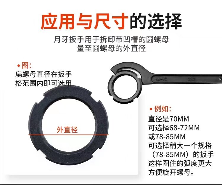 Crescent Wrench Hook Head Wrench Semicircle Half Moon Hook Type Water Meter Hook Type Round Nut Shock Absorbing Adjustment Side Demolition-Taobao