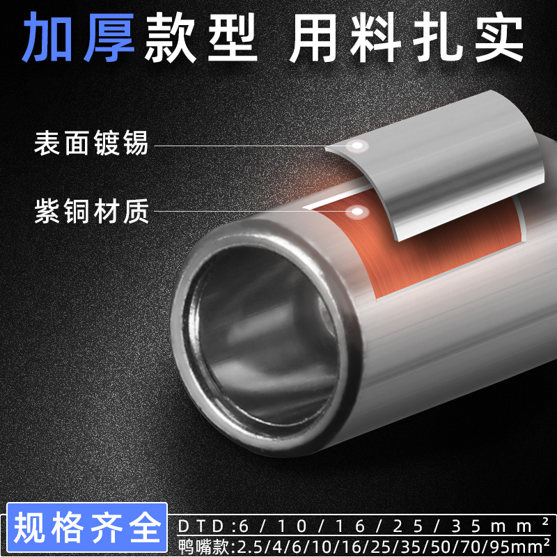 C45 copper contact pin DTD10 16 25 35 square wiring terminal red copper tinned end hollow open copper wire nose-Taobao