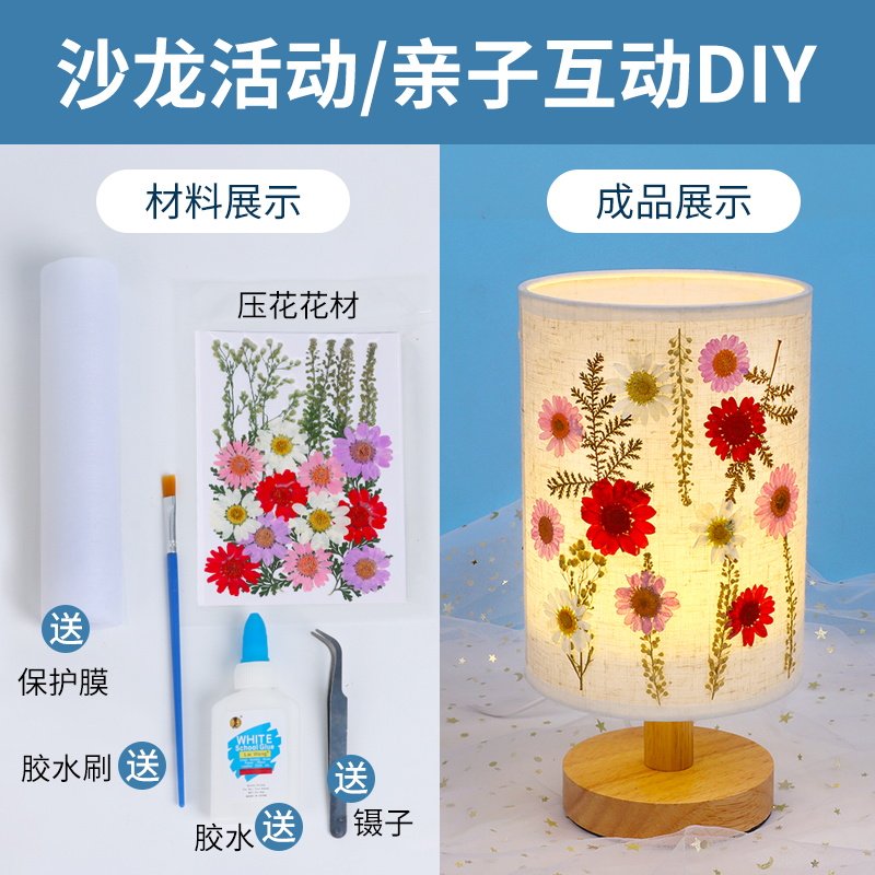 New year handmade dry flower table lamp diy material bag pressed flower light small night light Children Christmas Escort Table Lamp Swing Piece-Taobao