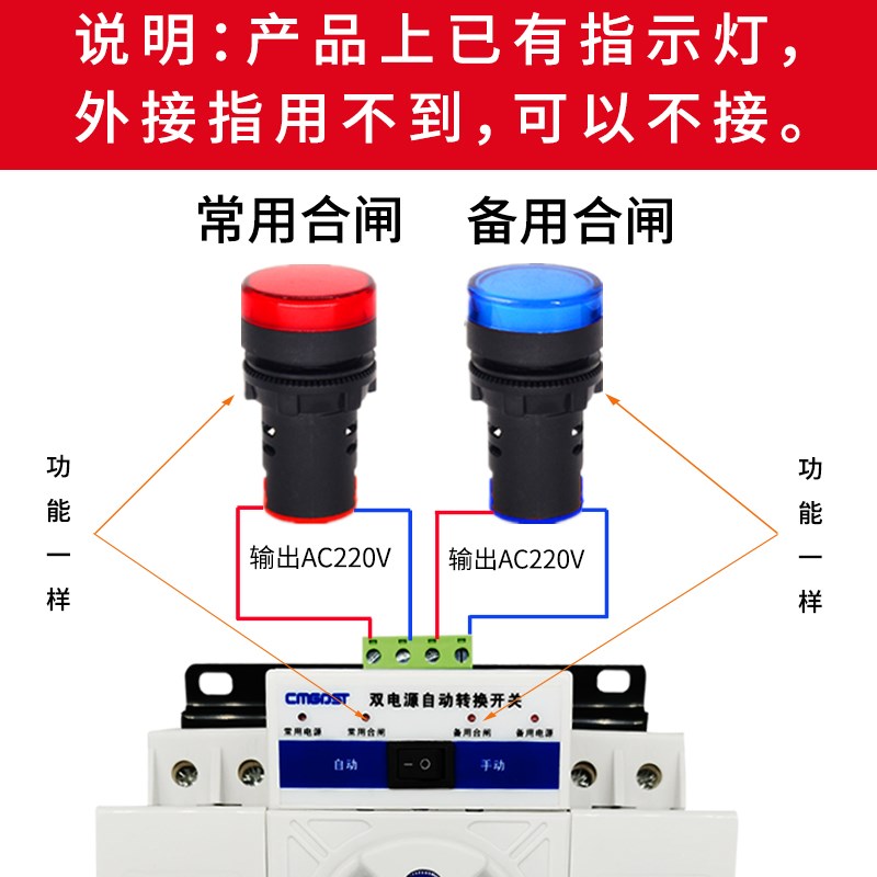 Dual power automatic switch switch 63A 2P CB mini - type household single - phase 220V white