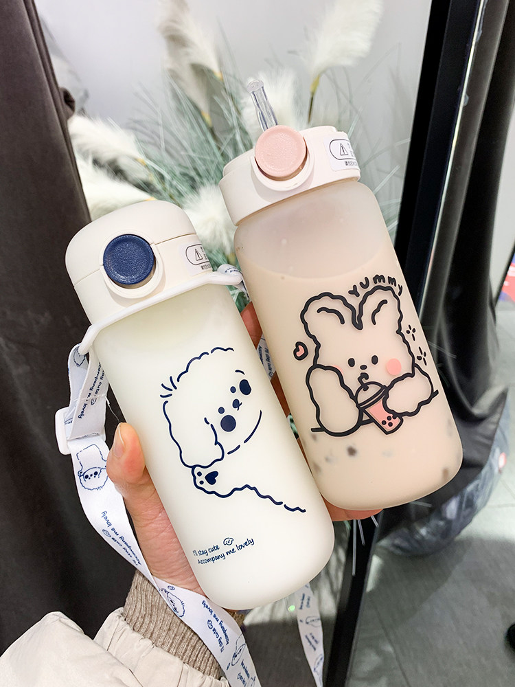 Cup cup cup cute conveniently carry straw water cup network red glass girl pink girl ins