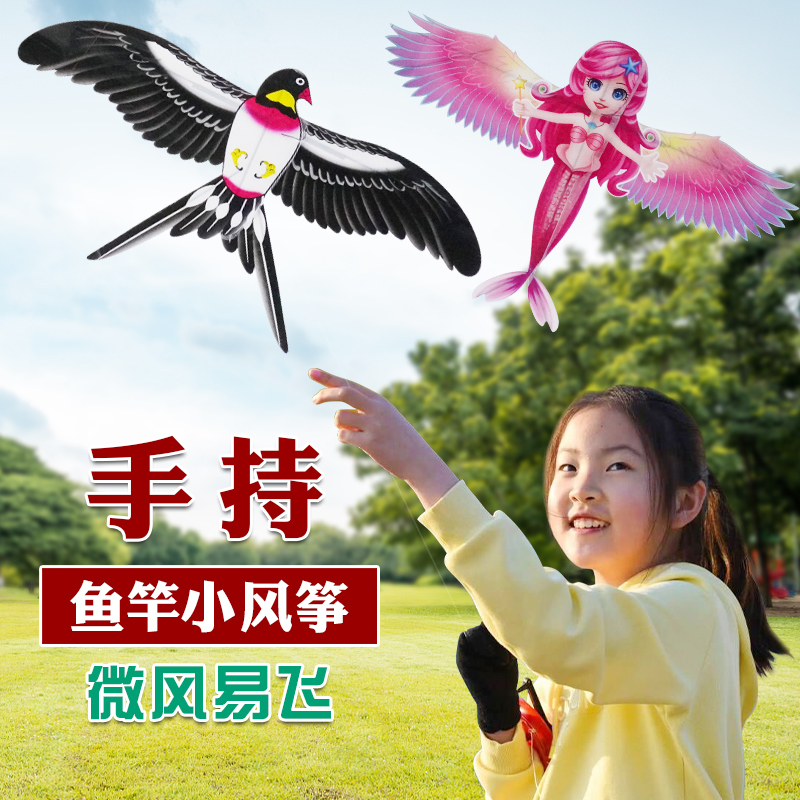 Fishing rod kite children breeze easy fly dynamic network red special hand-held children small small bird swallow