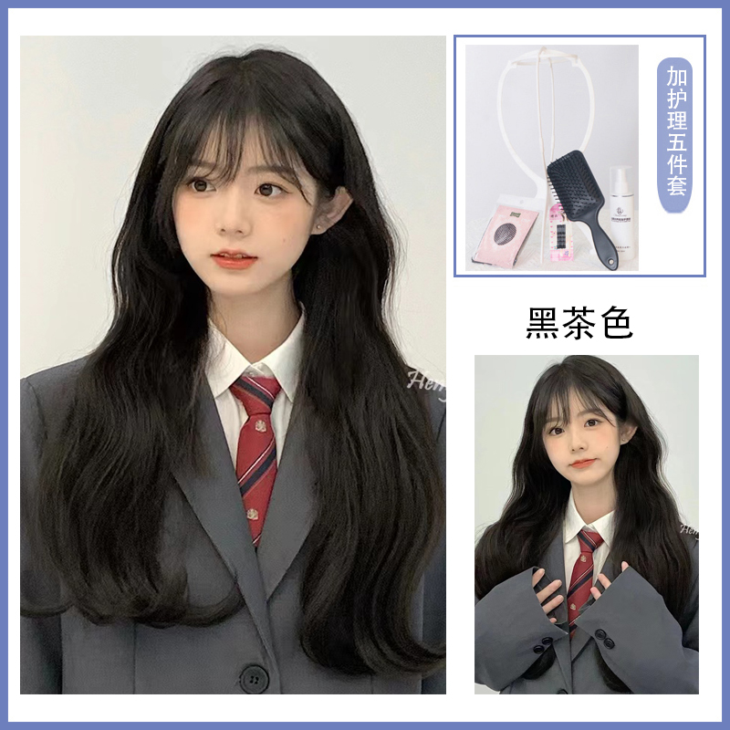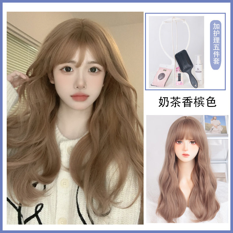 Wig female hair long waves long curly waves ripple lolita champagne naturally sweet full head set