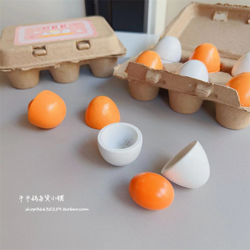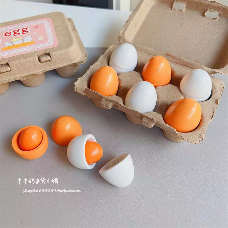 Children 6 wooden simulation egg set Easter diy toy wood taught egg early in home game