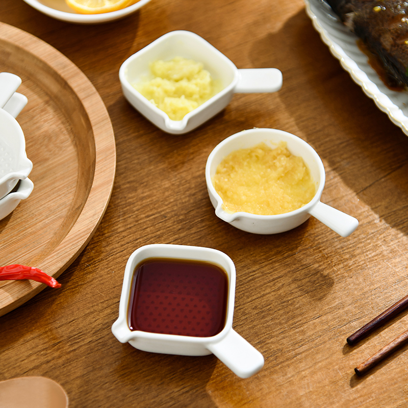 Ceramic research capacity seasoning dish grinding ginger mud with handle household dipping sauce small dish vinegar sauce barbecue hot pot seasoning dish