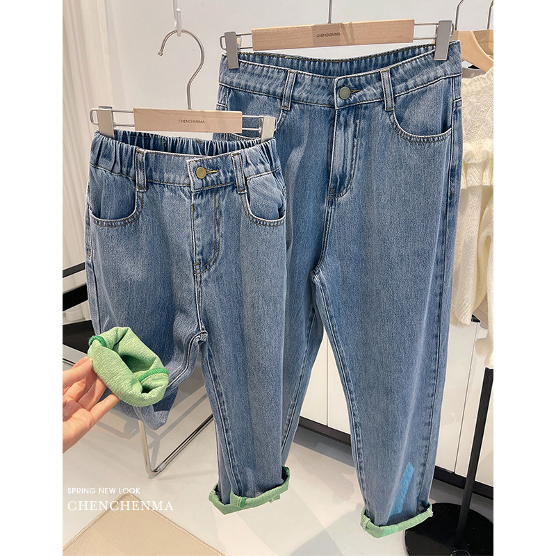 Chen Chen Mother Girl Clothing 2023 Spring Autumn New Parent-child Bangs Jeans Baby Foreign Air Wash Vintage Jeans-Taobao
