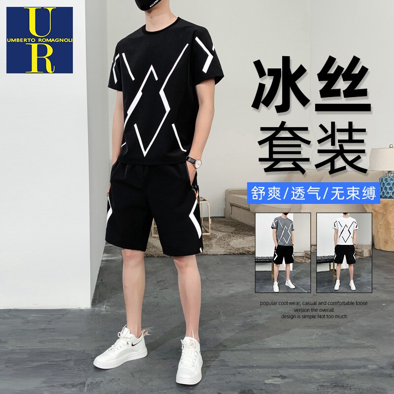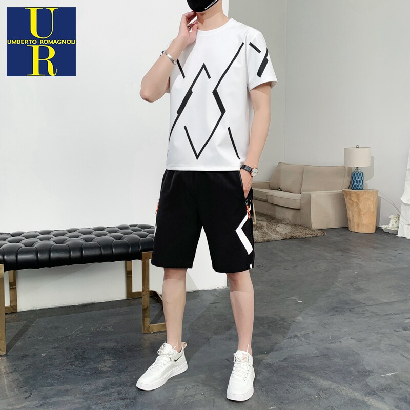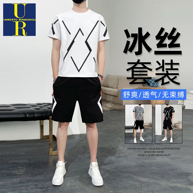 Nasa New Dry Dry Ice Wire Set Men Short Sleeve T-shirt Summer Cover Men's Casual Short Short Two Pieces