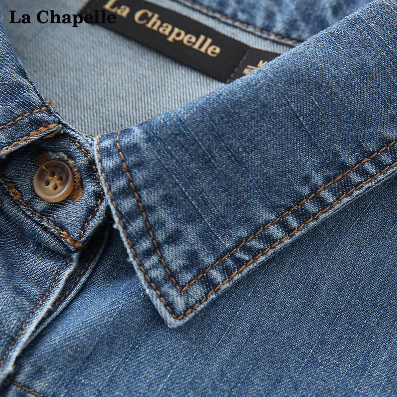 Lasciabel La Chapelle Korean version retro blue loose with long sleeve denim shirt woman shirt blouse-Taobao