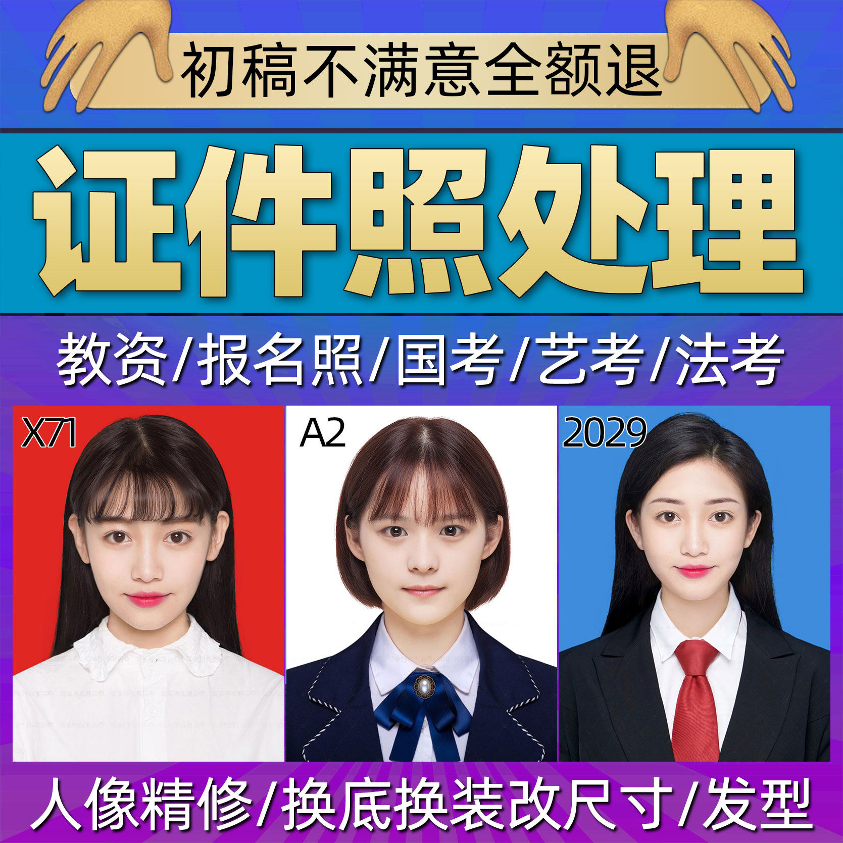 Certificate photo Reform bottom color ps Refined Bottom p clothes repair photo modification of an inch size electronic version p photo for hair changing type-Taobao