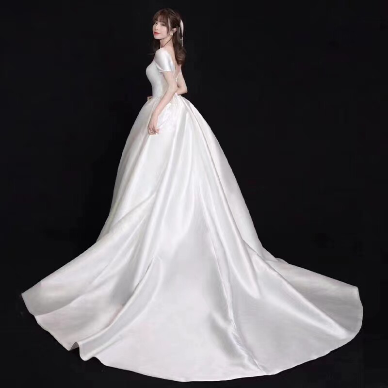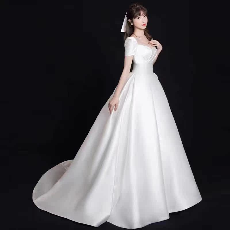 Satin Wedding Dress 2023 New Bride Married Little Luxury Small High - end Small French Outdoor Dress Woman