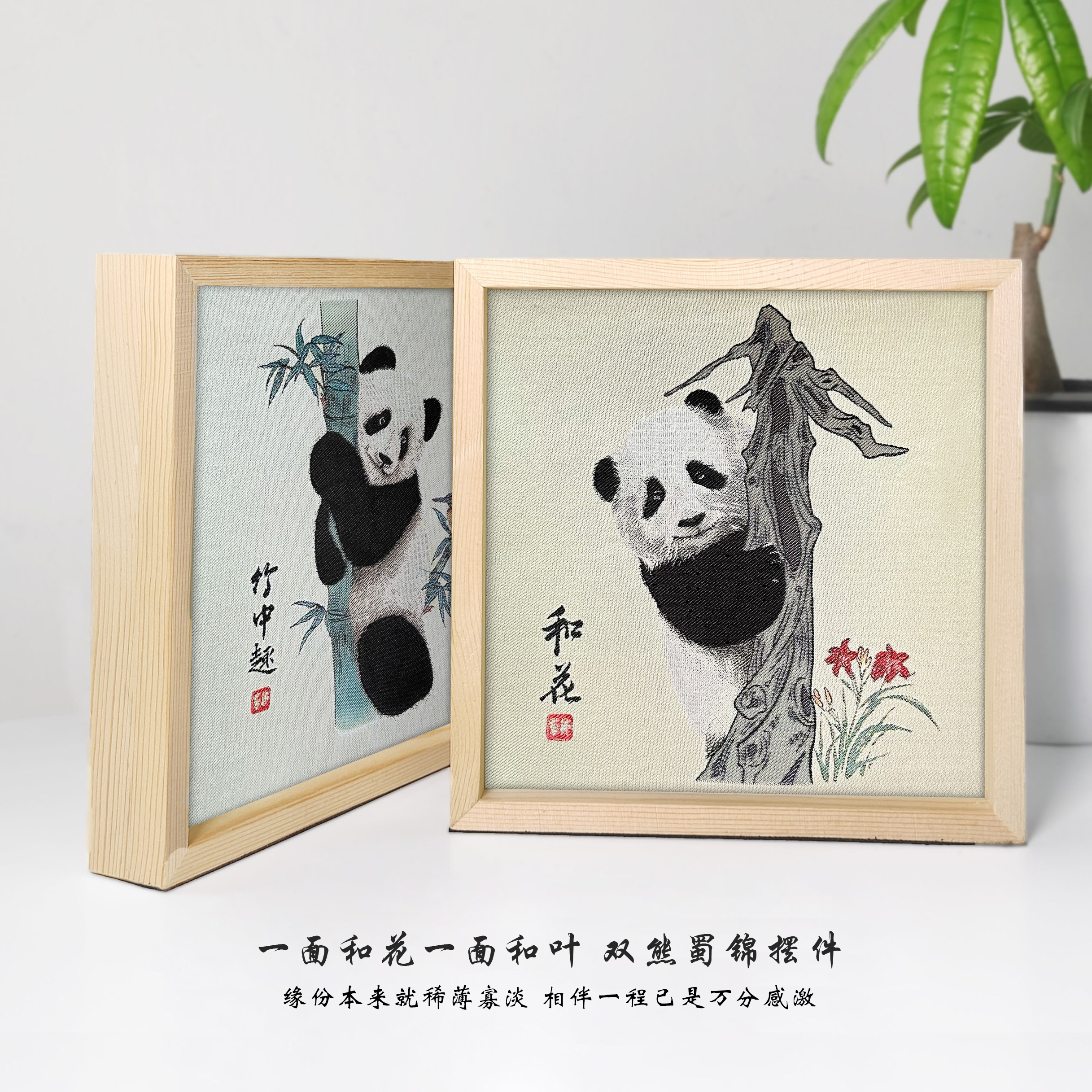 Shu Embroidery Giant Panda Photo Frame Embroidery Pendulum full-hand double-sided embroidered Chinese wind featured gift abroad for old foreign gifts-Taobao