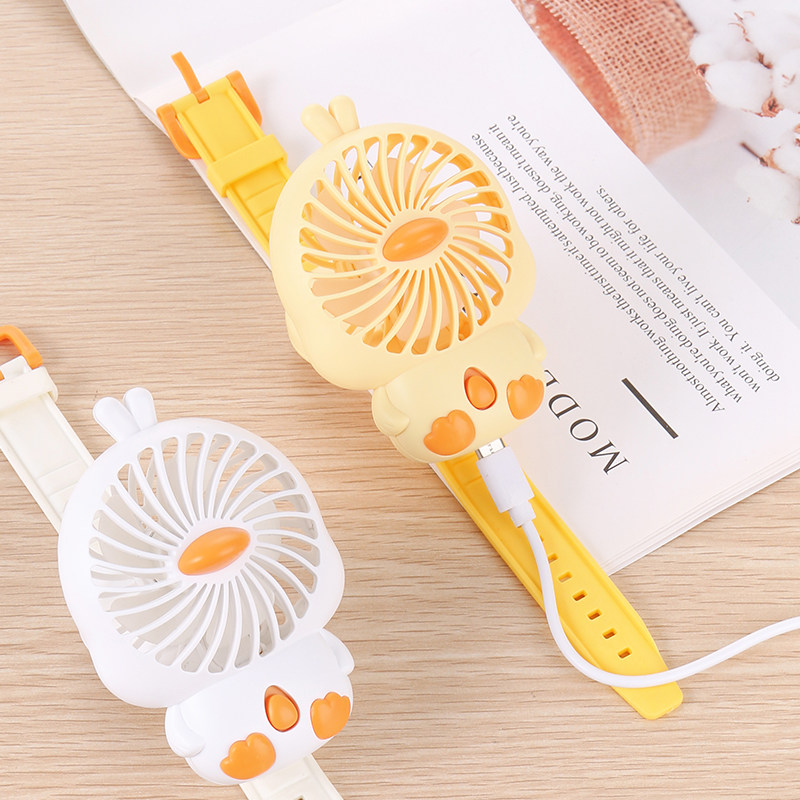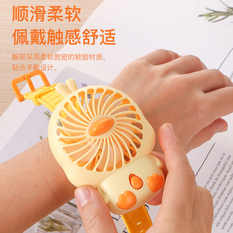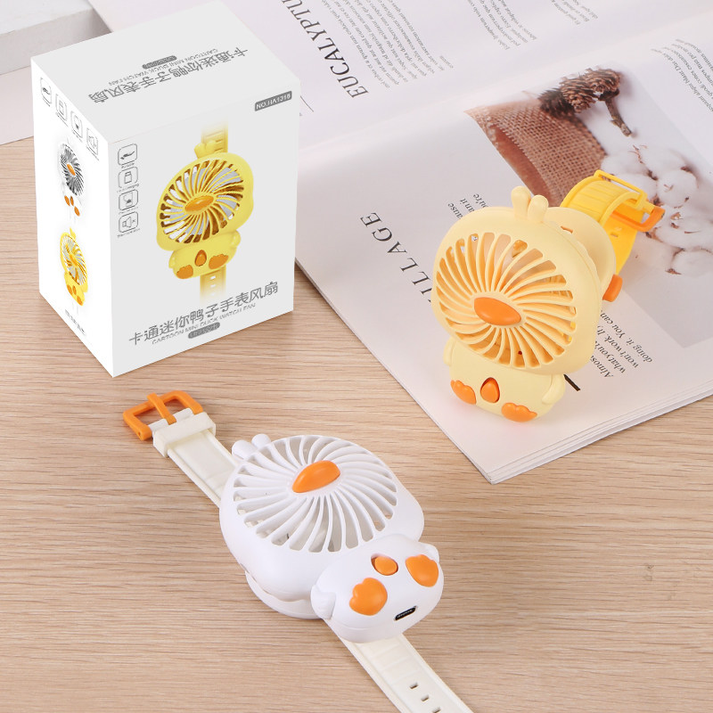 Small Yellow Duck Watch Small Fan Mini Portable Usb Electric Fan Cartoon Wrist Outdoor Electric Fan Charging Small 1307 Students handheld with children holding hands ring electric fan outdoor camping AA-Taoba