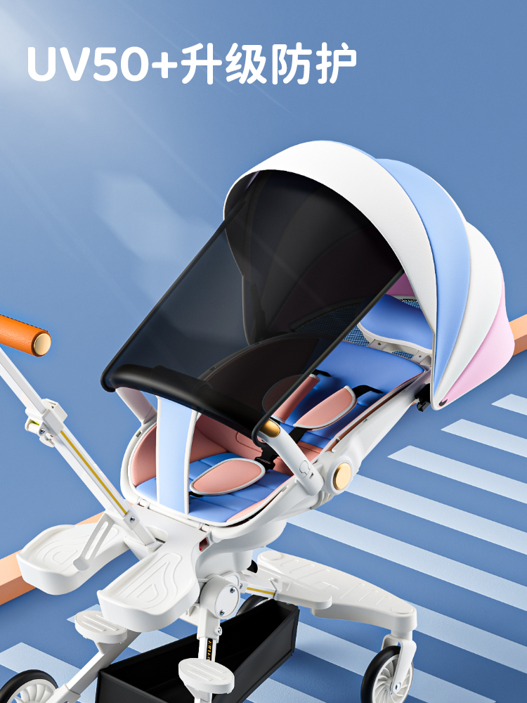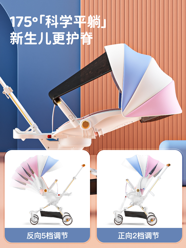 Baby cart can be lying in a cart with light and foldable one-click baby two-way walk of the doll