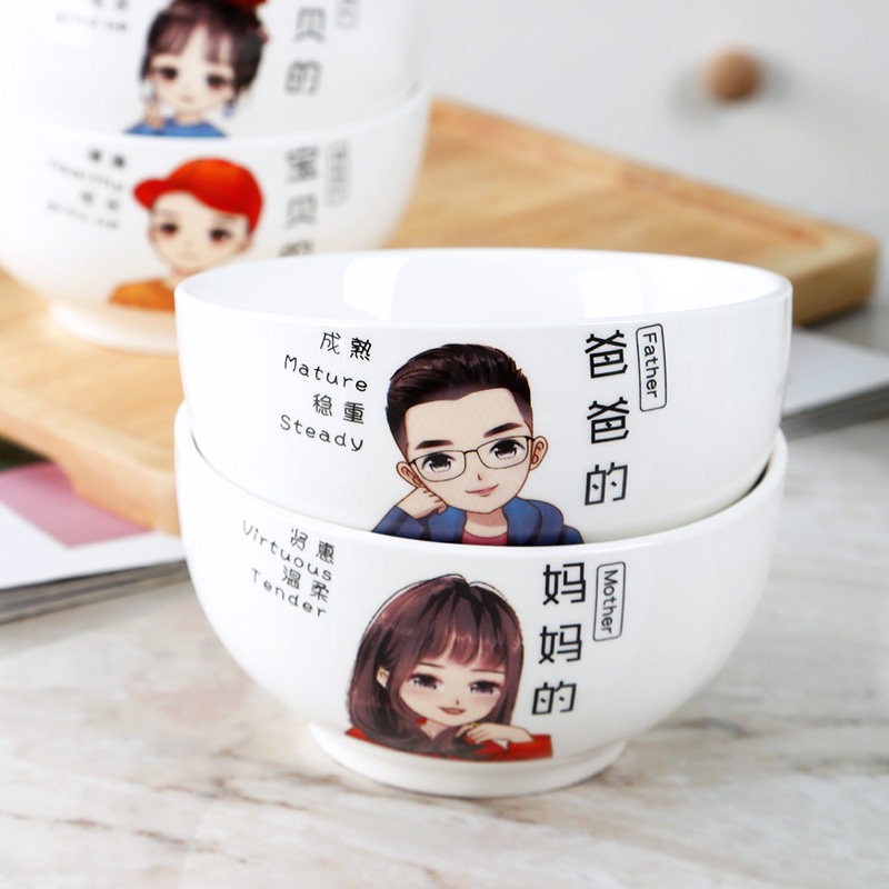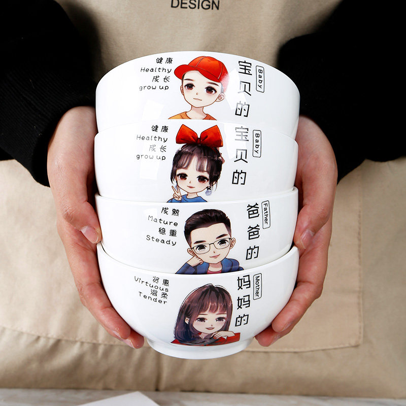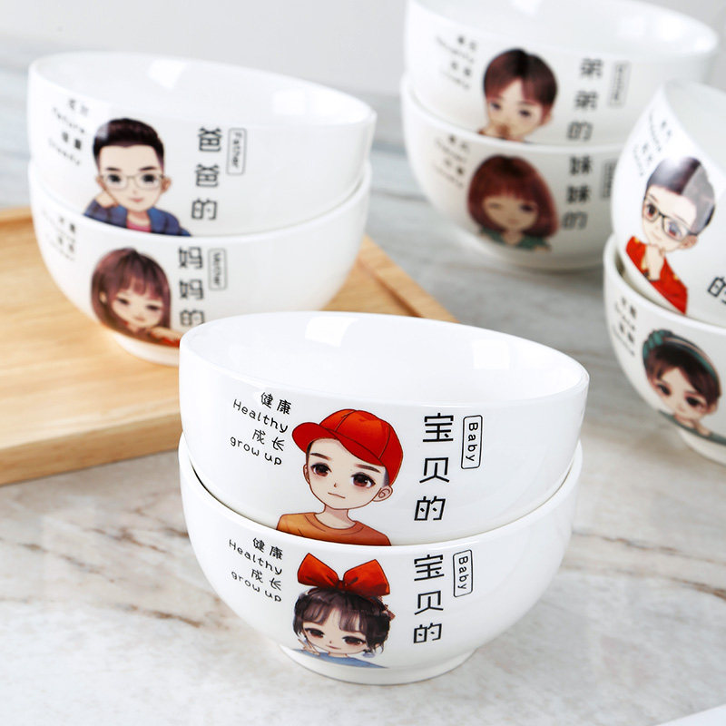 The ceramic bowl household uses a 5 - inch round bowl cartoon rice bowl with a four - mouth name bowl for Nordic household bowl