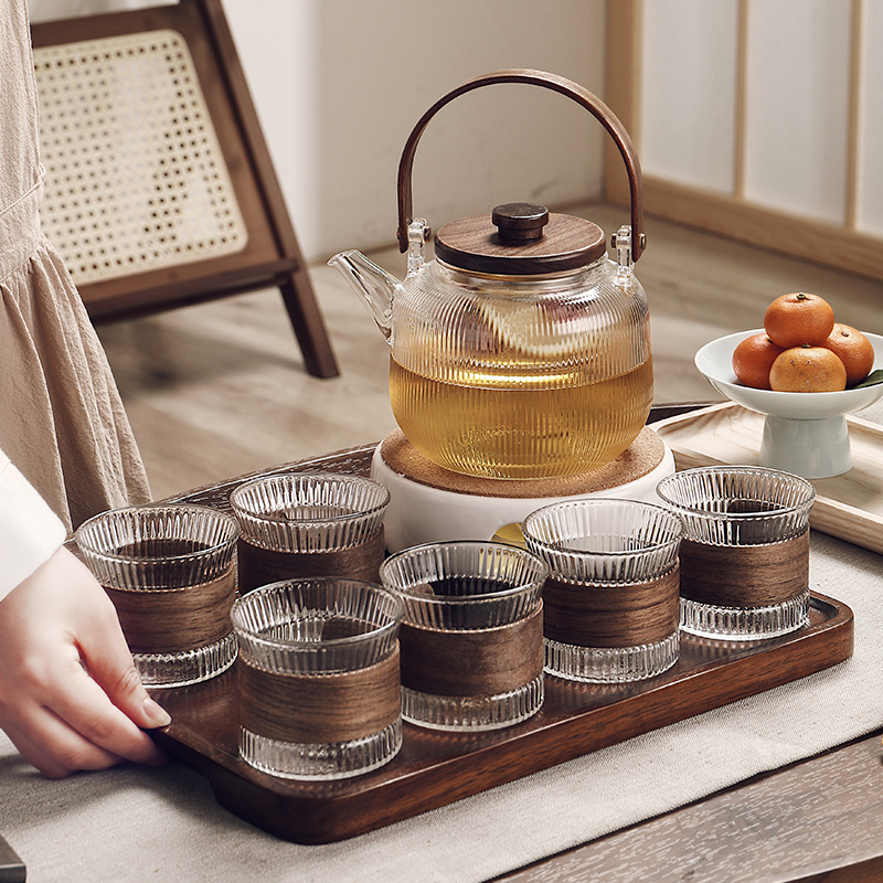 Chinese style glass flower teapot tea cup suit boiled water fruit tea afternoon tea set candle heated health preserving pot boiling tea machine-Taobao