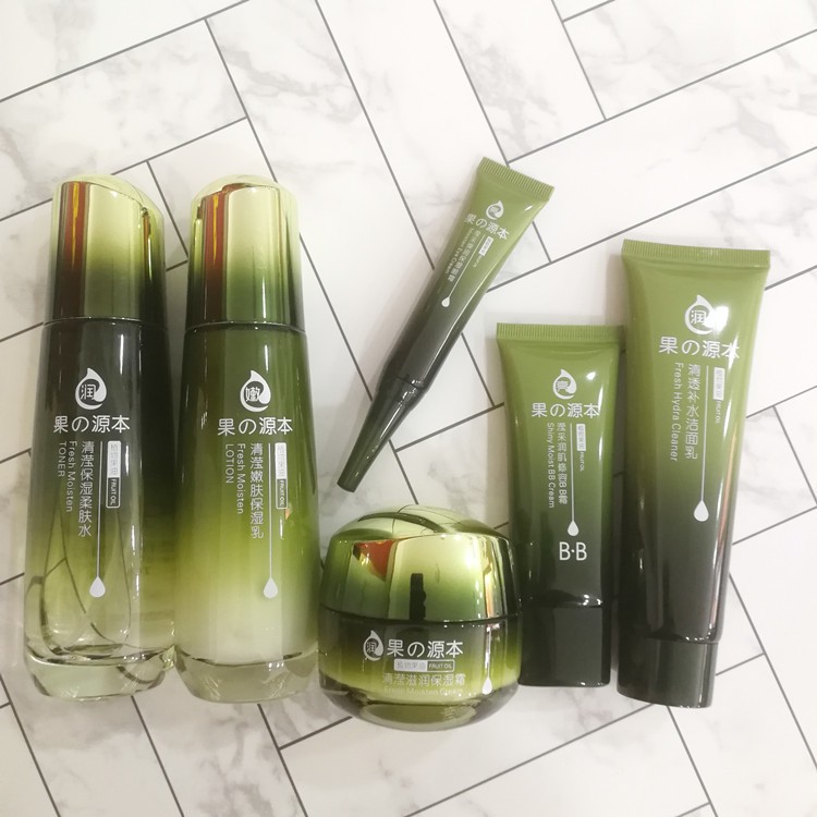 Qi Qian Fruit source Bench box plant fruit wood Benching control oil tonic water moisturizing shrink pores protective skin care product suit