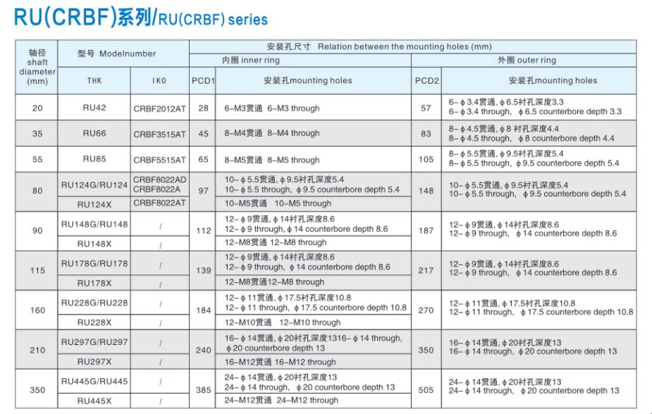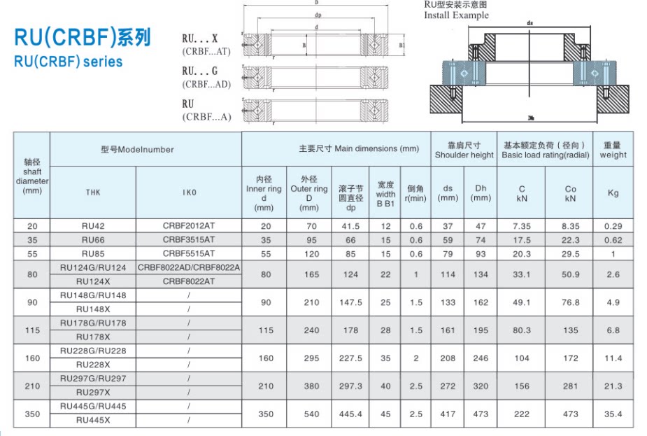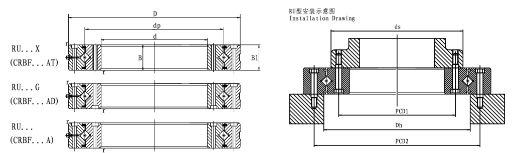 BRU124 148 178 228 297 445G XUUCC0 P5 Cross Roller Bearing Robot Bearing