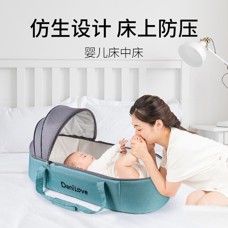 Baby Car Bed Basket Out Portable Discharge Safe to Lie Newborn Baby Cradle Handhandle