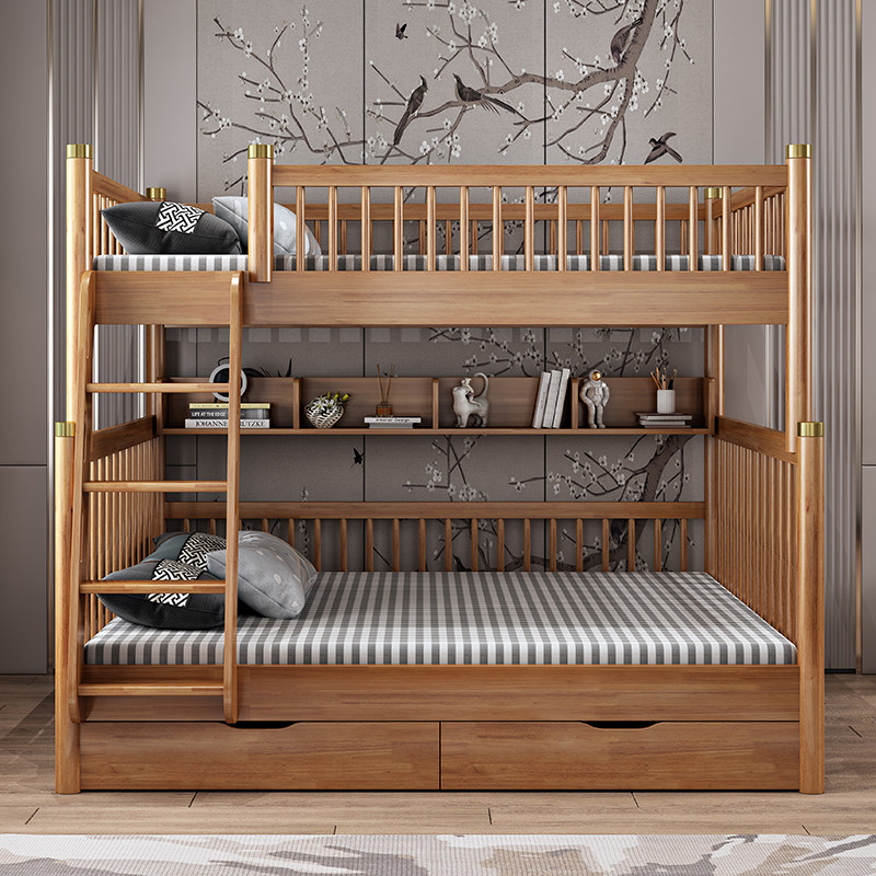 Walnut wood bed two layers of new Chinese children bed high and low bed multifunctional child bed up and down bed