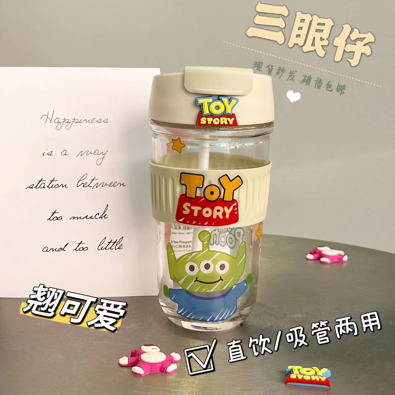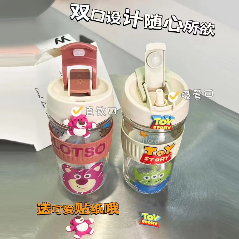 Strawberry Bear Double Cup Coffee Cup Glass Cup 2022 new cup of straw cup high value along the line