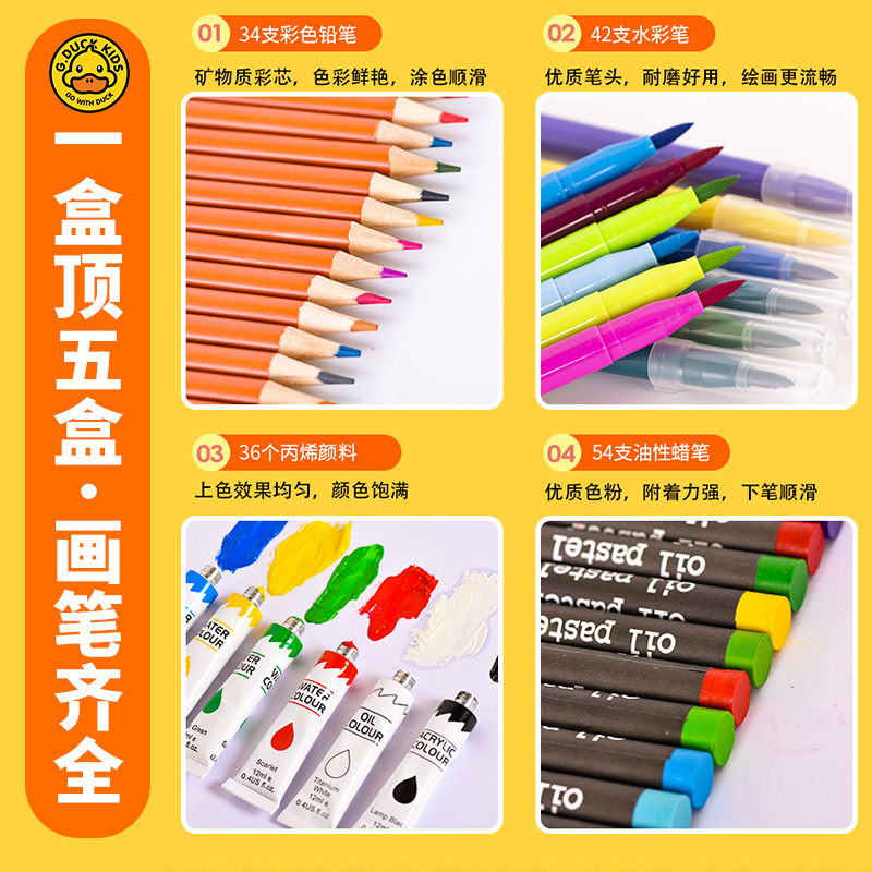 GDUCK Harrow small yellow duck watercolor pen washable suit children paintbrush water-soluble pen 36 color kindergarten fine art student wax pen 24 painting suit drawing tool over birthday New Year-Taob