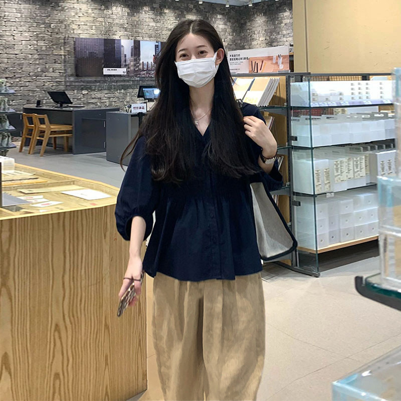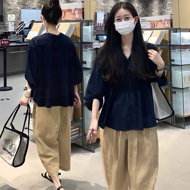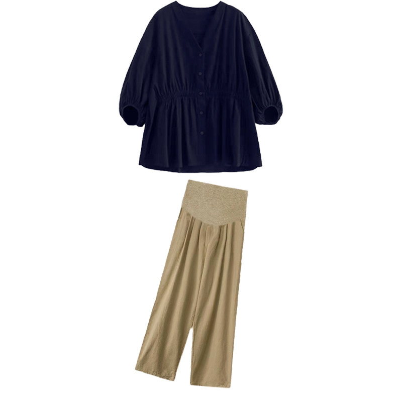 Pregnant Women's Pregnant Women Early Fall Two Sets Stylish Lantern Sleeves T-shirt Blouses Big Code Pregnant Woman Pants Sports Suit Autumn Dress-Taobao