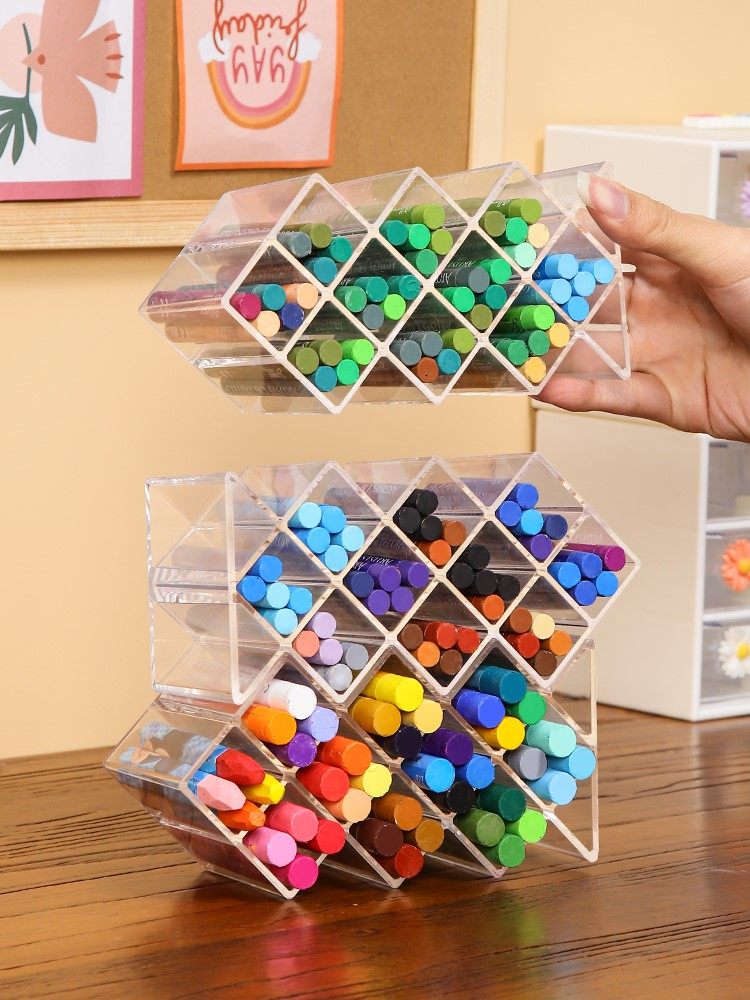 Pen insert pen holder box storage box desktop creative crayon grid children's outfit color lead painting stationery oil painting stick transparent