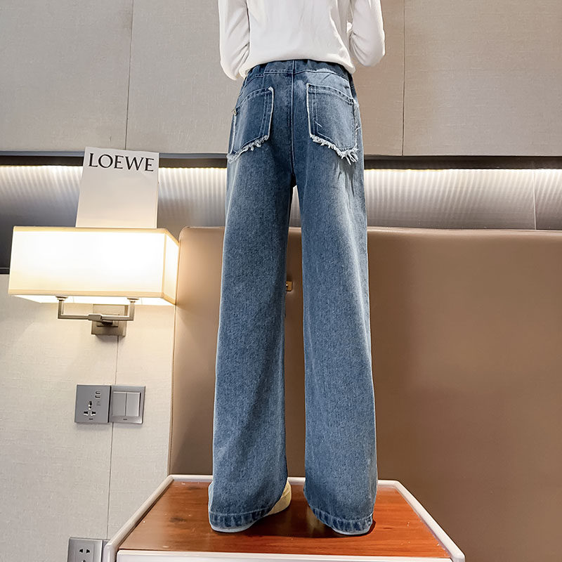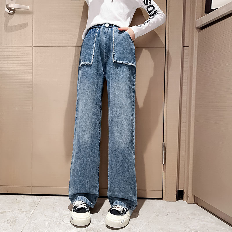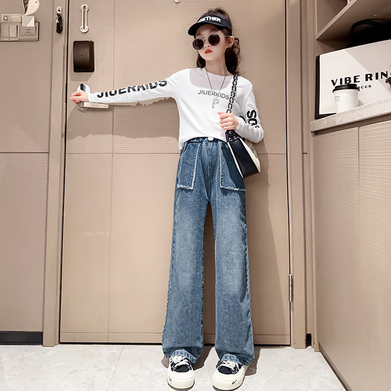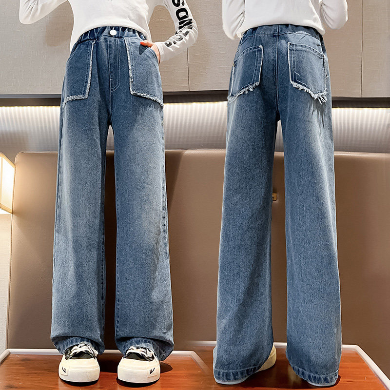 Girls pants spring and autumn fashionable spring wide legs casual spring pants large children's jeans