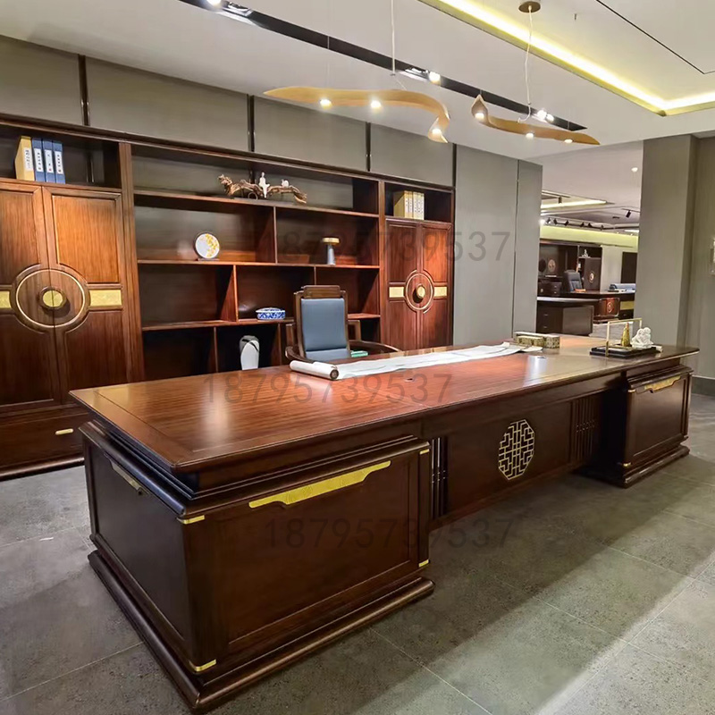 New Chinese Solid Wood Large Banquet Desk Combination Chairman Wujimu High-end Boss Table Furniture Customization