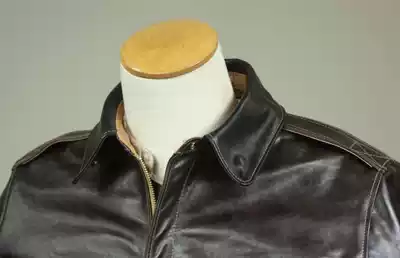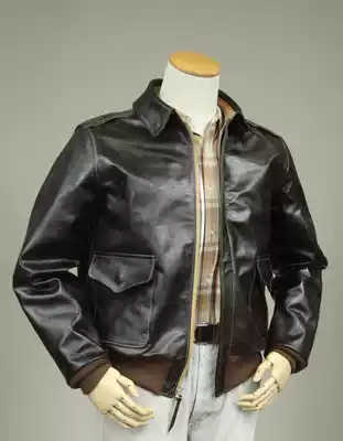 Universal produced a replica World War II American A2 flight jacket black and brown aniline horse skin vegetable tanned leather stiff