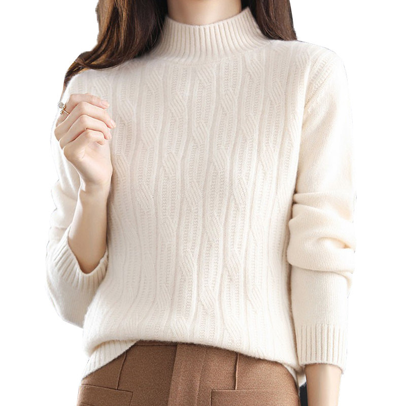 Ordos Produce Cashmere Sweater Women Half High Collar Sweatshirt Autumn Winter Sheep Sweatshirt Woman Loose shorts Undershirt Woman-Taobao