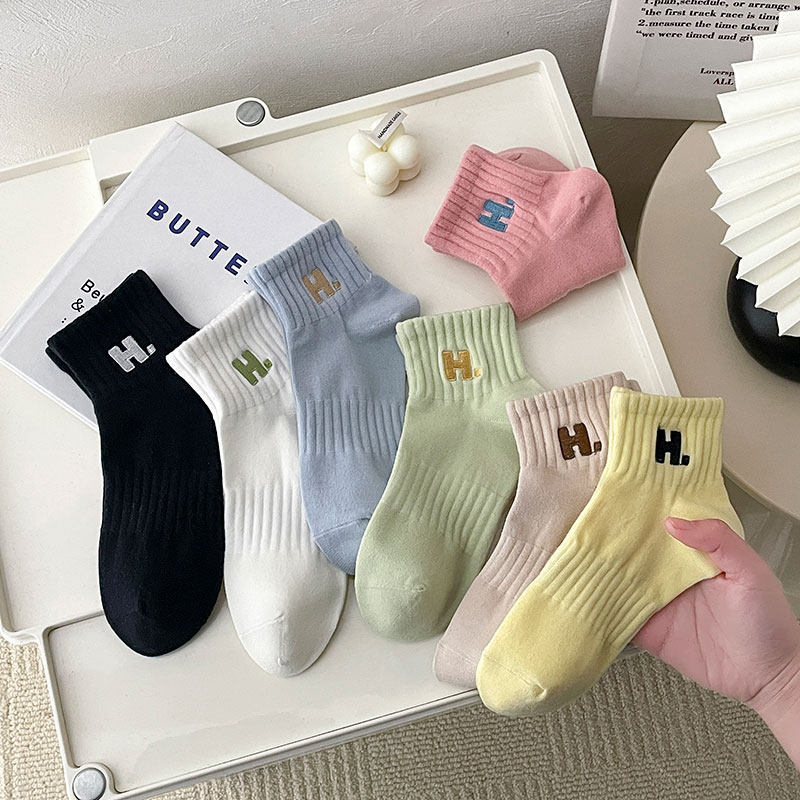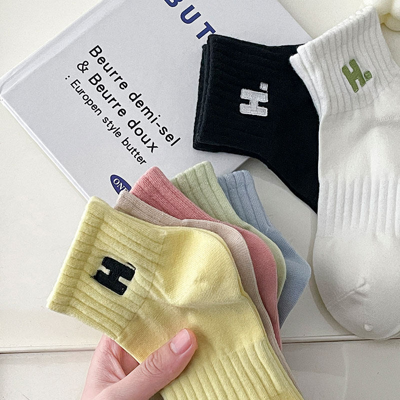 Japanese Macaron Color Simple Embroidery Letters Short Personality