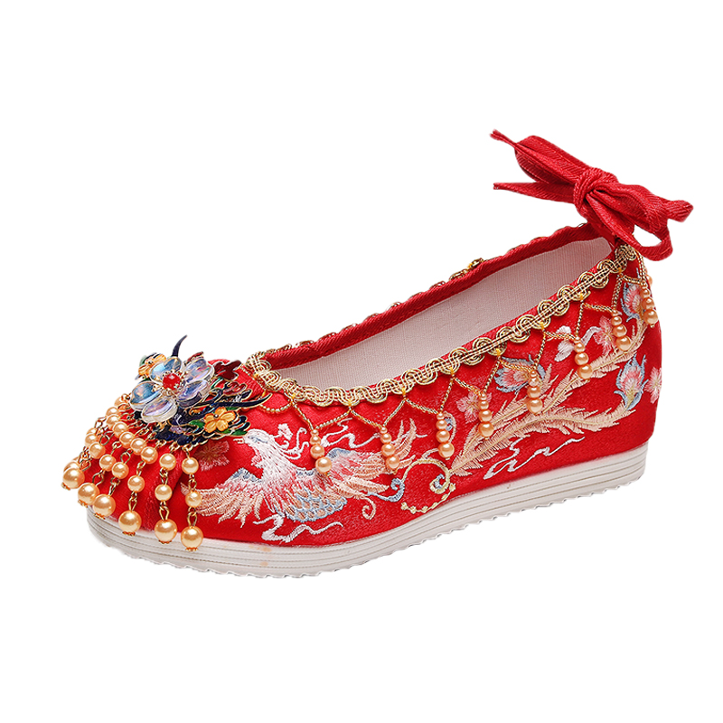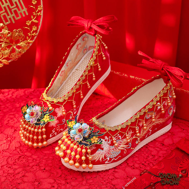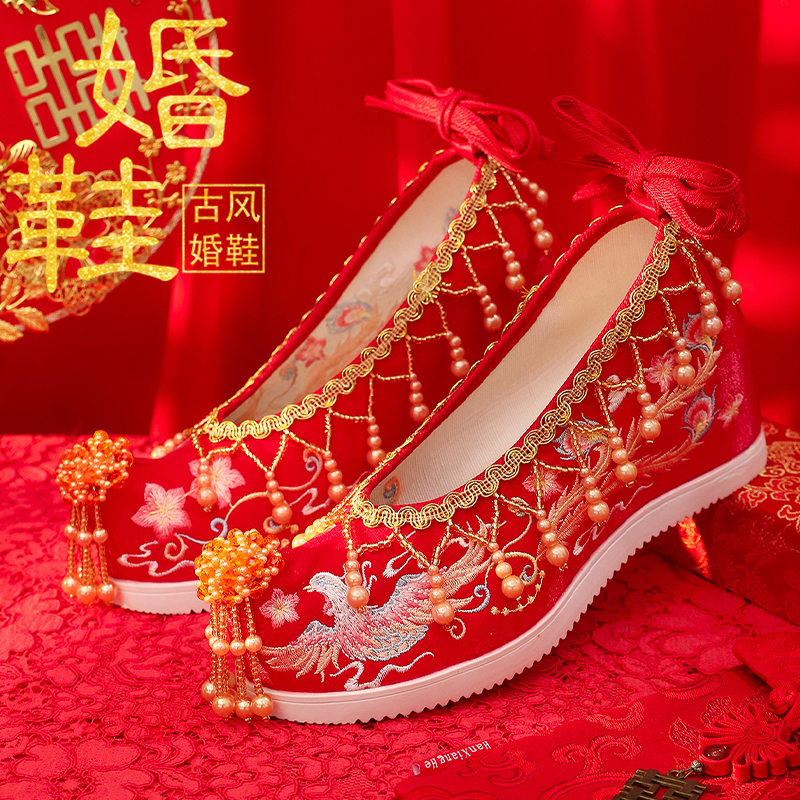 Spring and autumn new flow Su women's ancient wind embroidered shoes red bridal show and wedding shoes Chinese interior heightening retro Han clothes shoes-Taobao