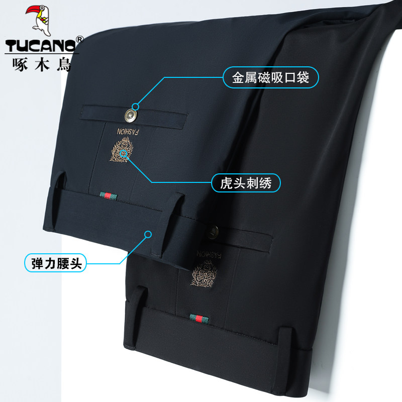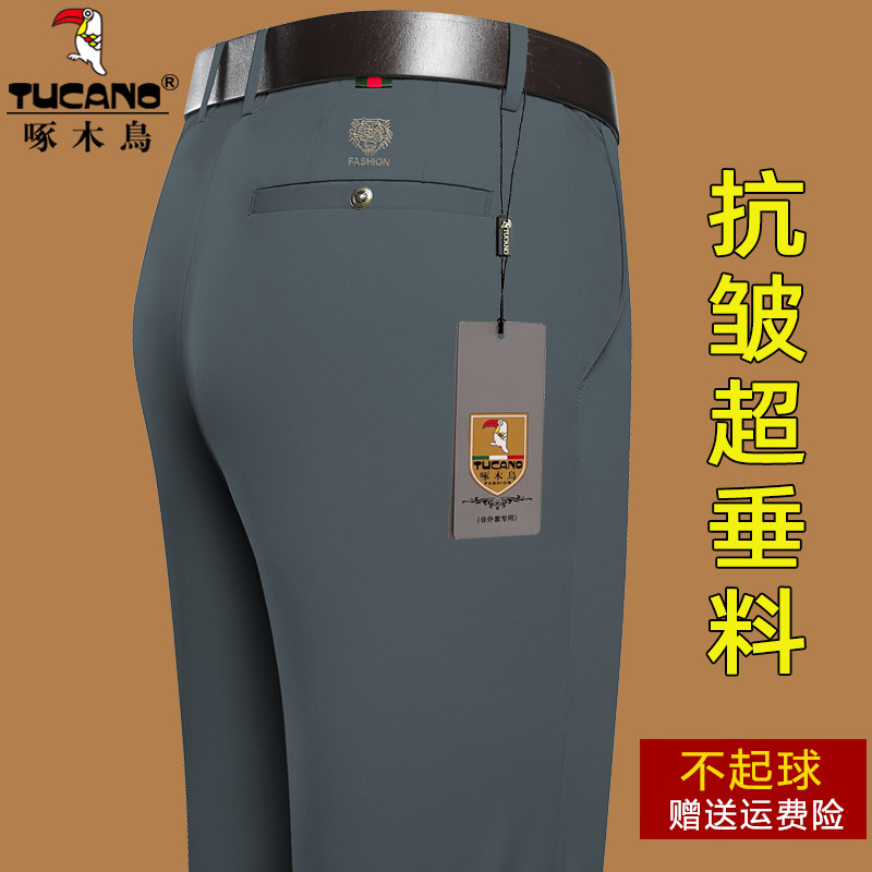 Woodpecker men's casual pants spring and autumn pants elastic straight straight tube pants thicker business leisure